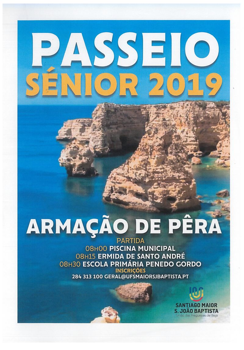 Estão abertas as inscrições para o primeiro passeio Sénior 2019, no próximo dia 26 de junho a Armação de Pêra.