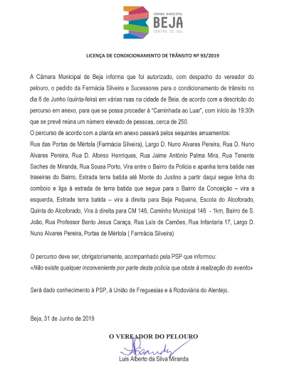 Interrupção de trânsito, amanhã, dia 6 de junho, em várias ruas da União das Freguesias de Beja (Santiago Maior e São João Baptista)