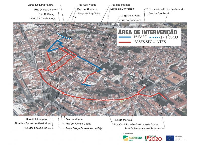 De acordo com o planeamento previsto, os trabalhos do 1º troço terão início nas ruas D. Dinis e D. Manuel I até à rua de Alcobaça e no largo Dr. Lima Faleiro, sendo necessário interromper o trânsito na rua D. Dinis, a partir do largo de Santo Amaro, nos largos Dr. Lima Faleiro e parte do Lidador e na rua D. Manuel I.