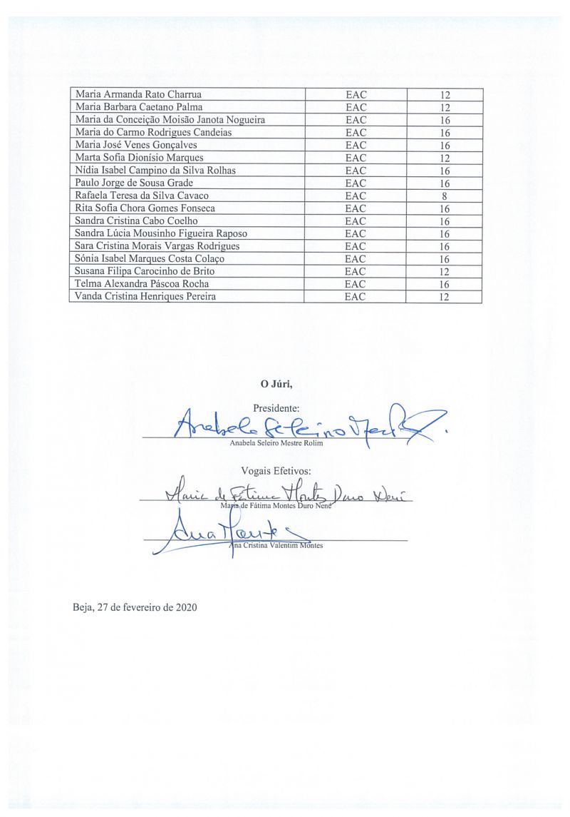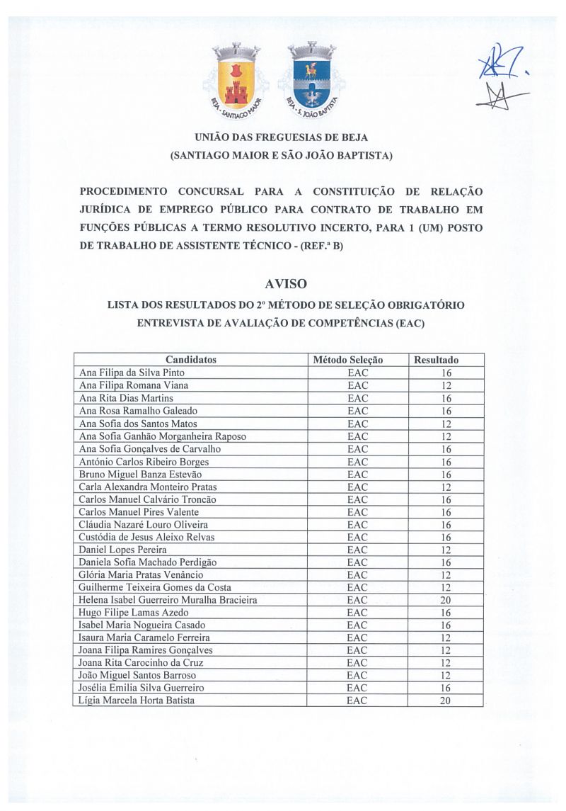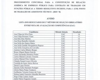 Lista dos Resultados do 2º Método de Seleção Obrigatório ( Entrevista de Avaliação de Competências) - Procedimento Concursal Assistente Técnicos.