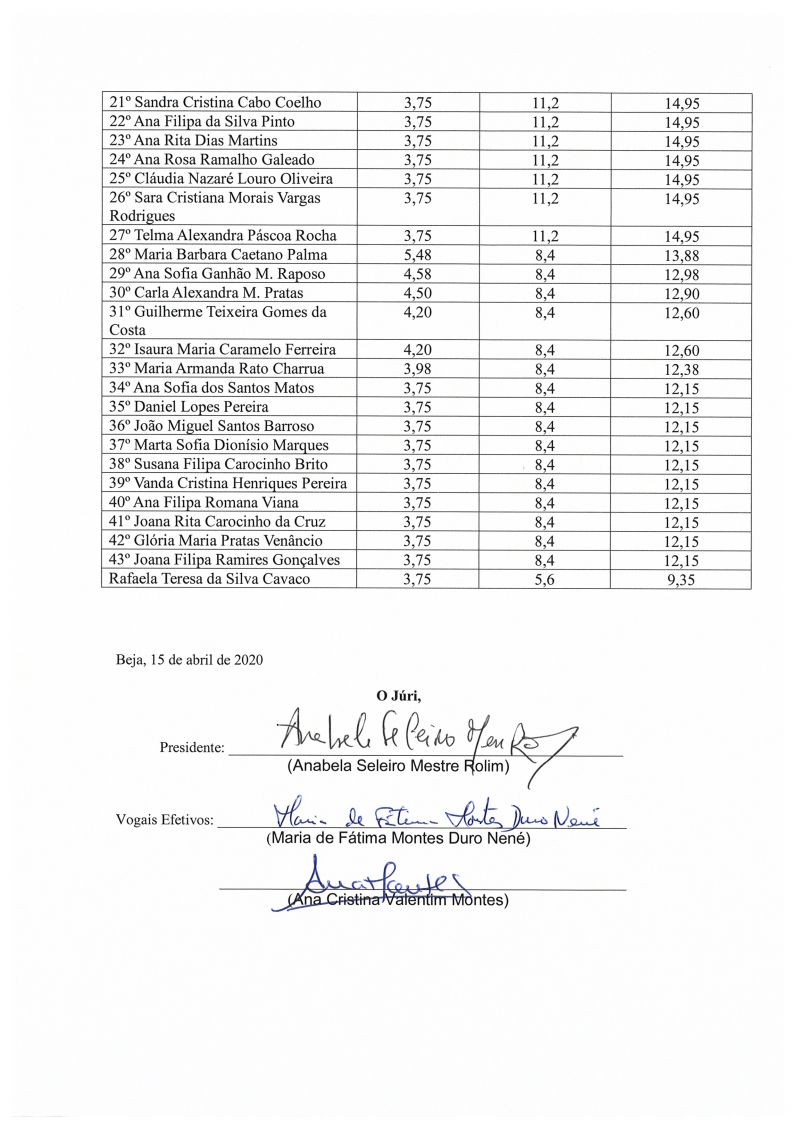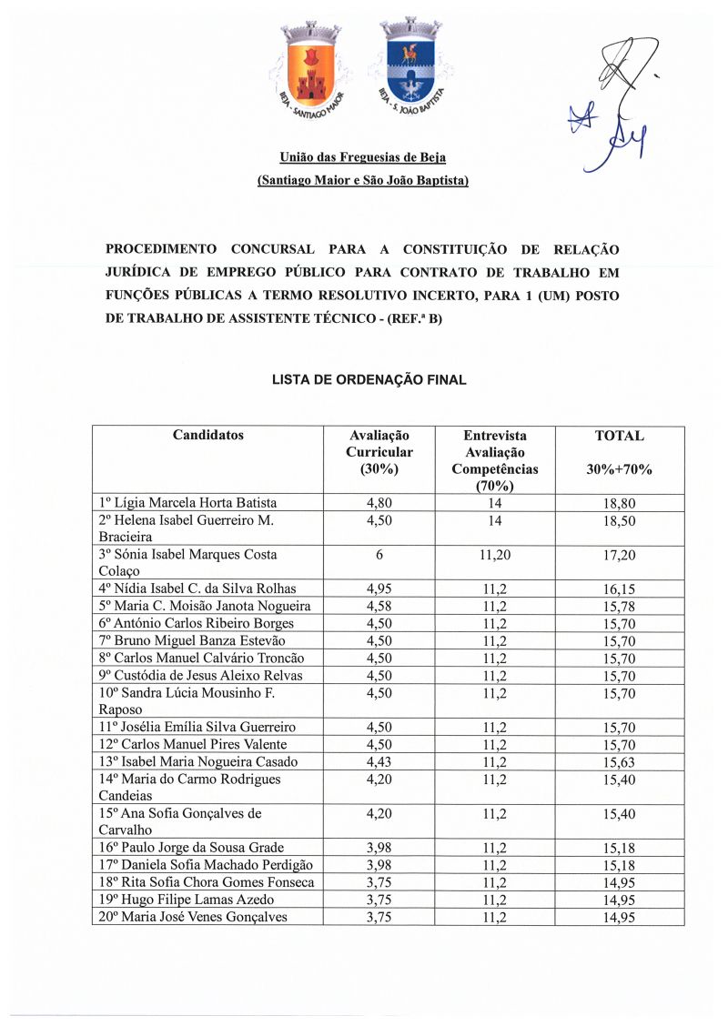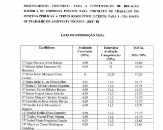 Lista Final do Concurso para a Categoria/Carreira de Assistente Técnico