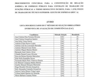 PROCEDIMENTO CONCURSAL PARA A CONSTITUIÇÃO DE RELAÇÃO JURÍDICA DE EMPREGO PÚBLICO PARA CONTRATO DE TRABALHO EM FUNÇÕES PÚBLICAS A TERMO RESOLUTIVO INCERTO, PARA 1 (UM) POSTO DE TRABALHO DE TÉCNICO SUPERIOR- GESTÃO DE EMPRESAS (REF.ª A)