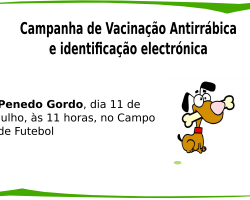 Tem lugar, no próximo dia 11 de julho, no Campo de Futebol do Penedo Gordo, pelas 11 horas, a campanha anual da vacinação antirrábica e identificação electrónica.