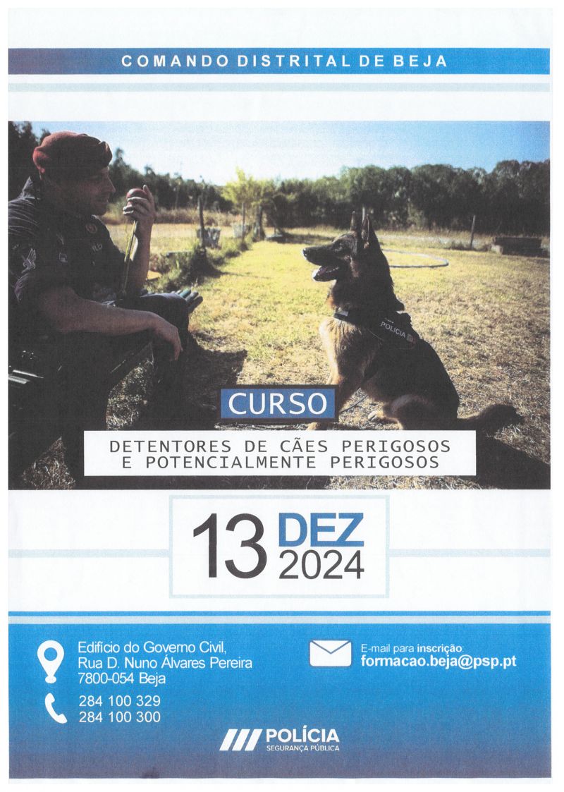 CURSO DE DETENTORES DE CÃES PERIGOSOS E POTENCIALMENTE PERIGOSOS - CURSO DIA 13 DEZEMBRO DE 2024.