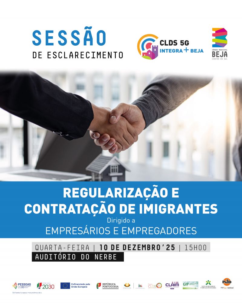 A sessão realizar-se-á no dia 10 de dezembro, entre as 15h00 e as 17h30, no Auditório do NERBE/AEBAL e será dirigida a empresários e empregadores dos diversos sectores de atividade do concelho de Beja, tendo como finalidade esclarecer os procedimentos de regularização de imigrantes em território nacional, bem como informar sobre os requisitos e boas práticas associados à contratação de cidadãos imigrantes em situação regular.