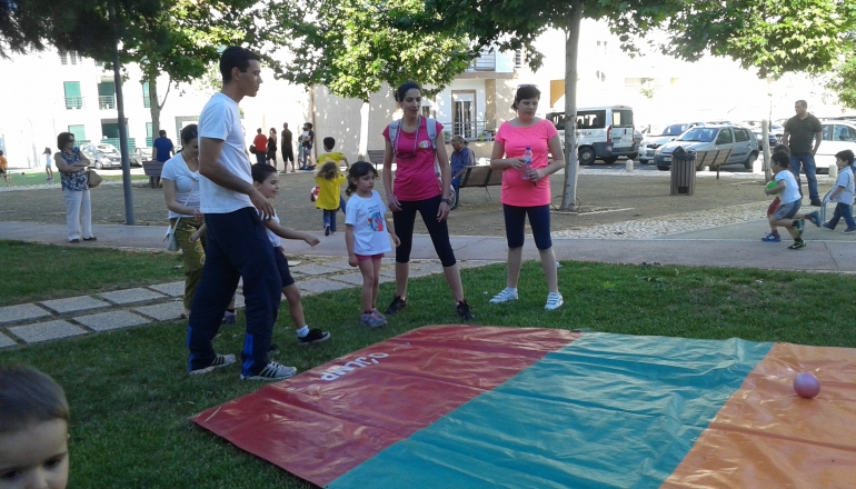 A União de Freguesias de Freguesias de Santiago Maior e São João Baptista promoveu, no passado dia 14 de Maio, feriado municipal, a primeira iniciativa do Ciclo ANIMAÇÃO DE ESPAÇOS PÚBLICOS - “Aparece e Experimenta!”. Apesar do calor que se fez sentir, a Praceta do Nerbe encheu-se de miúdos e graúdos para participarem num fim de tarde desportivo.