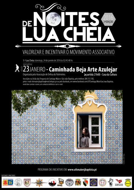 A partida para a Caminhada Beja Rota Azulejar está marcada para as 21 horas, do dia 23 de janeiro, na Casa da Cultura, local onde estará patente ao público uma exposição fotográfica com os trabalhos do primeiro concurso "Noites ao Luar", entre 15 e 30 de janeiro.