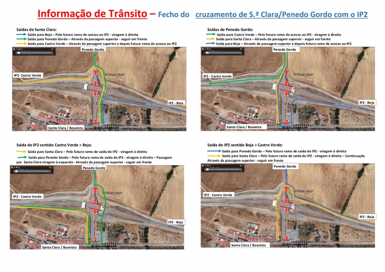 A empresa Conduril -Engenharia, S.A. informa que na próxima terça-feira, dia 8 de março, vai proceder ao encerramento do cruzamento do IP2, com Santa Clara de Louredo - Penedo Gordo.