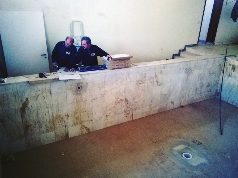 proceder à colocação de pavimento antiderrapante nos balneários de apoio