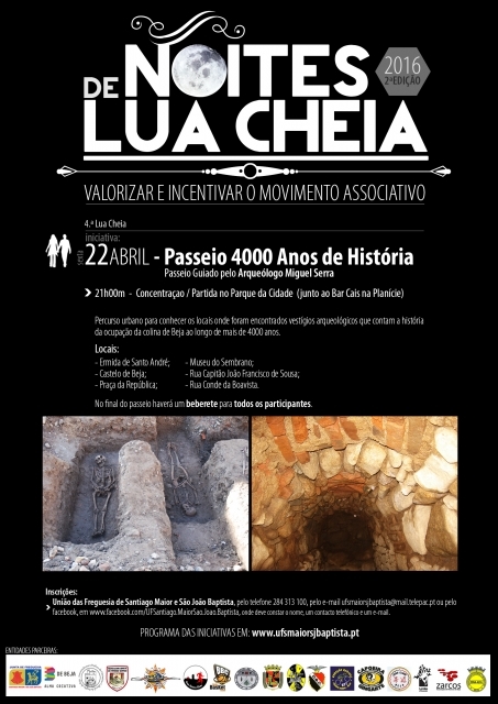 A quarta e última iniciativa de 2016 das Noites de Cheia está programada para a próxima sexta-feira, dia 22 de abril, com um percurso urbano para conhecer os locais onde foram encontrados vestígios arqueológicos que contam a história da ocupação da colina de Beja, ao longo de mais de 4000 anos.