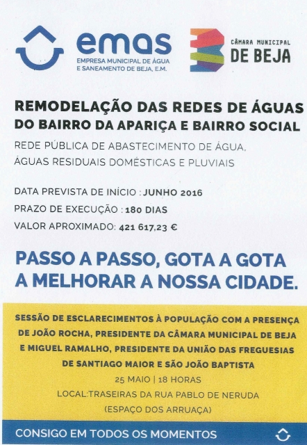 Bairros da Apariça e Social, sobre a remodelação das redes de águas, nas