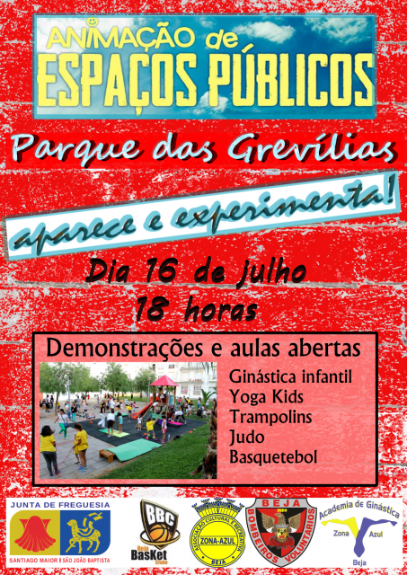 No próximo dia 16 de julho, a partir das 18 horas, no Parque das Grevilias, terceira iniciativa do Ciclo Aparece e Experimenta, com ginástica, yoga kids, trampolins, judo e basquetebol.