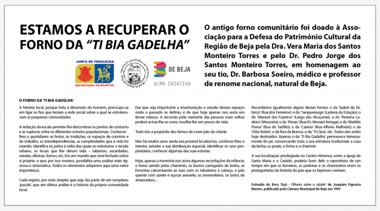 Figueira Mestre, sobre os fornos de cozer pão da cidade de Beja. Uma