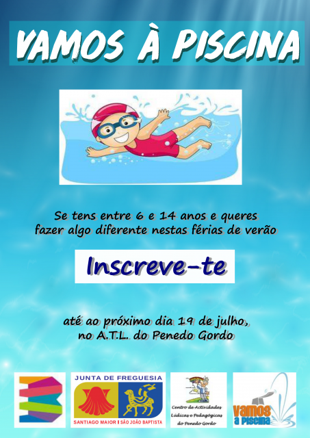 Em relação à União de Freguesias de Santiago Maior e São João Baptista, as crianças do Penedo Gordo podem inscrever-se nesta atividade na sede de Junta de Freguesia, ou o Centro de Atividades Lúdico-Pedagógicas do Penedo Gordo, até ao próximo dia 19 de julho.