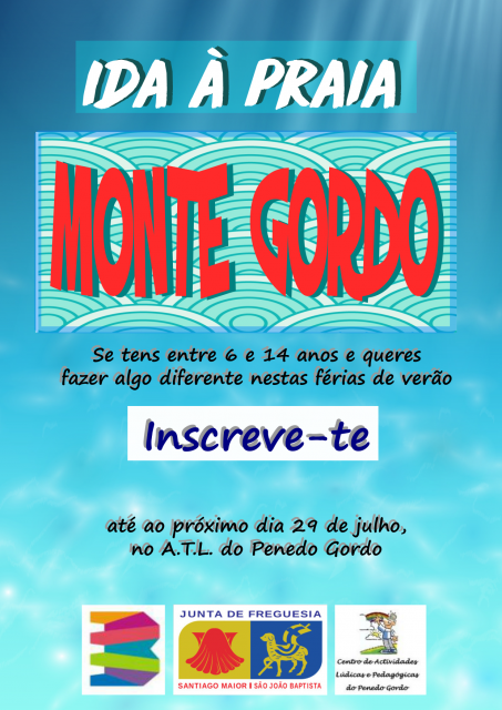 A União de Freguesias de Santiago Maior e São João Baptista está a organizar uma ida à praia, destinada às crianças do Penedo Gordo.