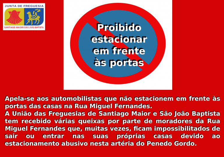 Apela-se aos automobilistas que não estacionem em frente às portas das casas na Rua Miguel Fernandes, no Penedo Gordo.