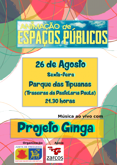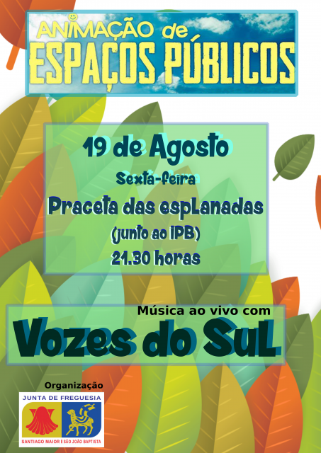 Na sequência do que se verificou no ano passado, a União das Freguesias de Santiago Maior e São João Baptista completa a oferta cultural da cidade, com a realização de mais duas iniciativas do Ciclo de Animação de Espaços Públicos. Desta feita, estão marcados mais dois eventos musicais: o primeiro, no dia 19 de agosto, no Praceta das Esplanadas, junto ao IPB, com a atuação do grupo Vozes do Sul; e no dia 26 de agosto, na Praceta das Tipuanas (traseiras da Pastelaria Paula II), com o Projecto Ginga.
