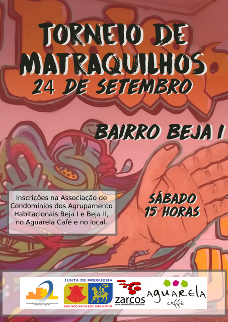 Está marcado para o próximo sábado, dia 24 de setembro, pelas 15 horas, o primeiro Torneio de Matraquilhos, organizado pela Associação de Condomínios dos Agrupamentos Habitacionais Beja I e Beja II.