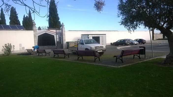 existentes frente à entrada do cemitério municipal, a Junta de Freguesia