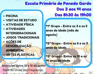 A União das Freguesias de Santiago Maior e São João Baptista coloca à disposição um conjunto de ateliers a todas as crianças / jovens entre os 3 e os 14 anos de idade, que decorrerão na Escola Primária de Penedo Gordo e...