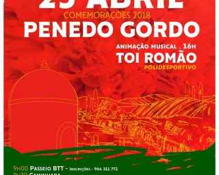 Comemorações do 25 de abril no Penedo Gordo. Inscrições para as atividades e para o almoço de convívio por telefone, email ou na Junta de Freguesia.
