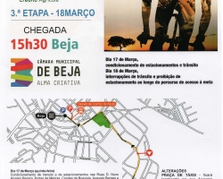 A partir de hoje, dia 17 de março, e até sexta-feira, estão previstos alguns condicionamentos de trânsito, devido à 3ª. Etapa da Volta Ao Alentejo, que chega a Beja dia 18 de março, pelas 15.30 horas.Os condicionamentos podem ser consultados na fotografia...